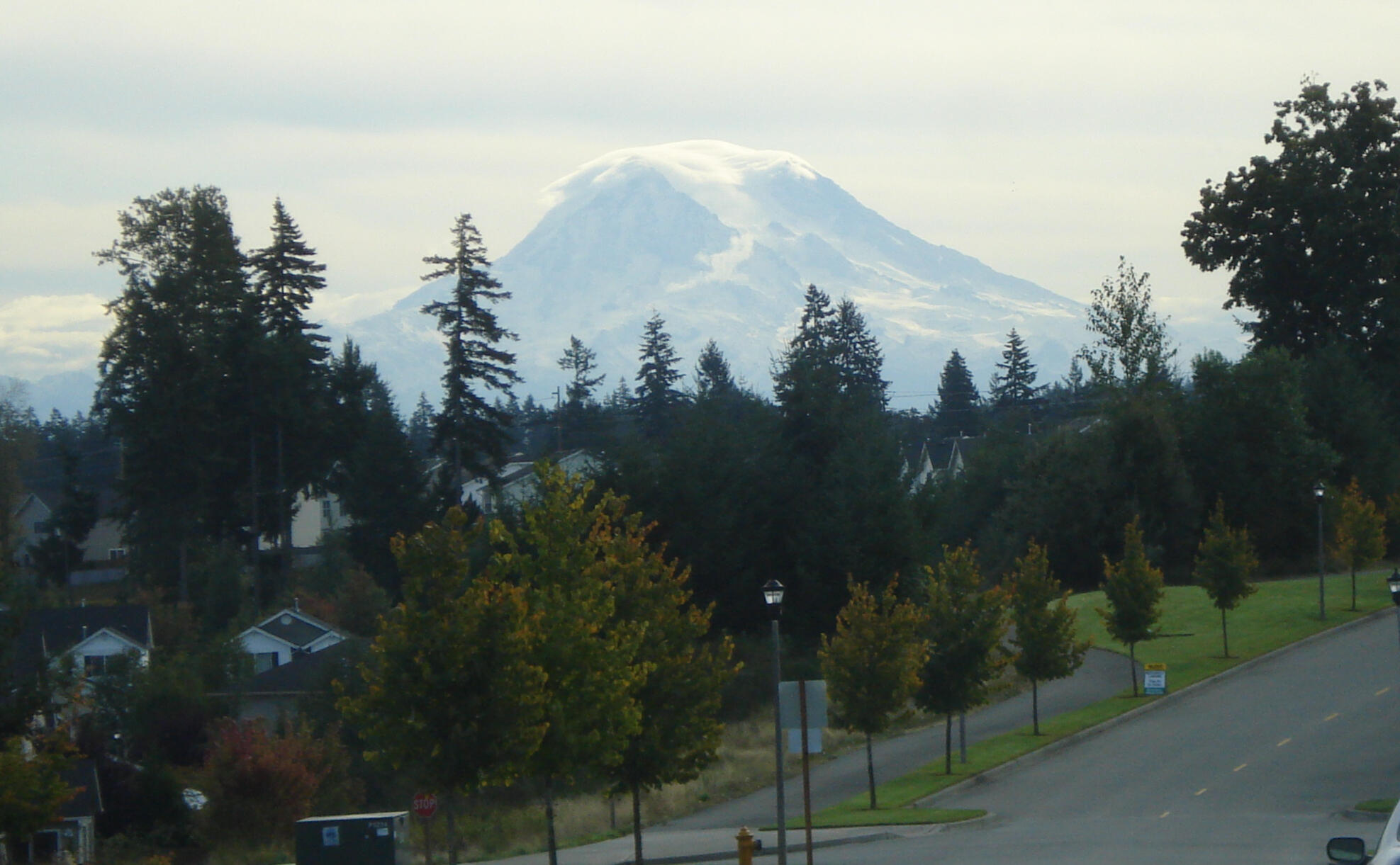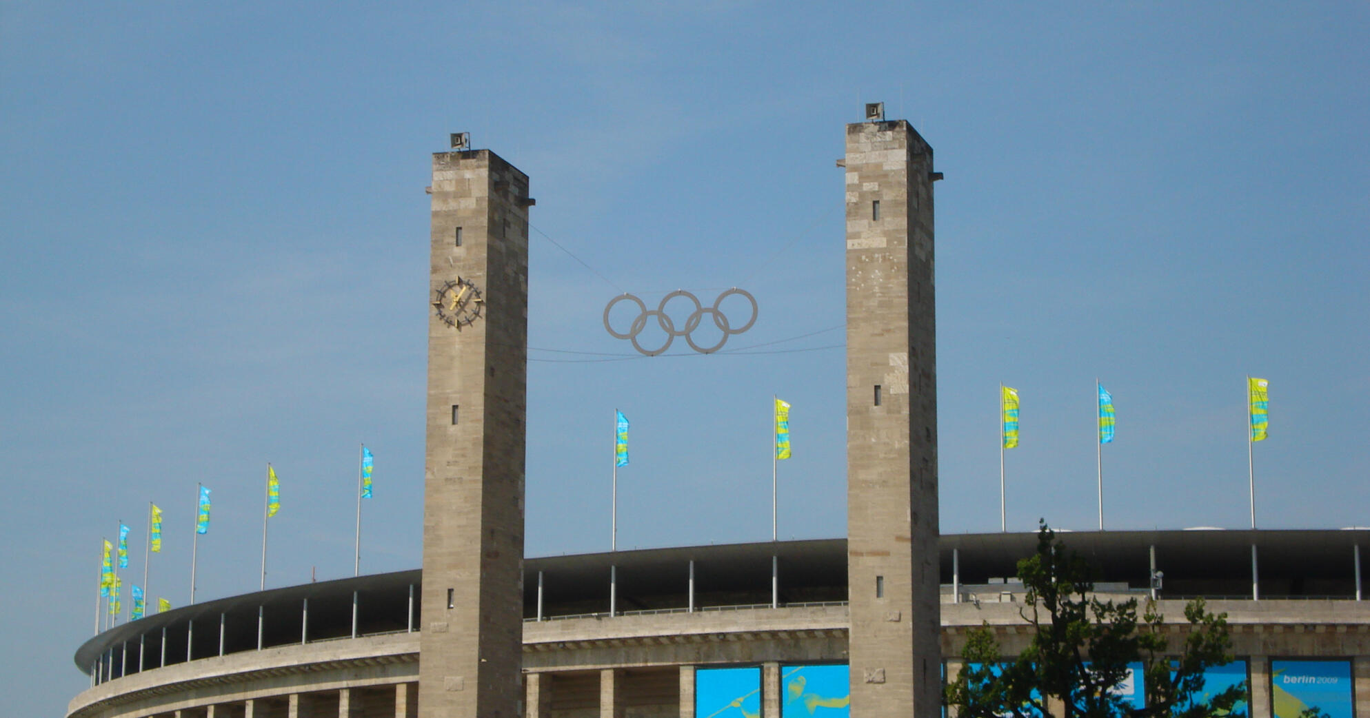 Time warp view from the boulevard, spaghetti sculpture in the foreground; modern built church spire and WWII bombed out church intermingled in the background.